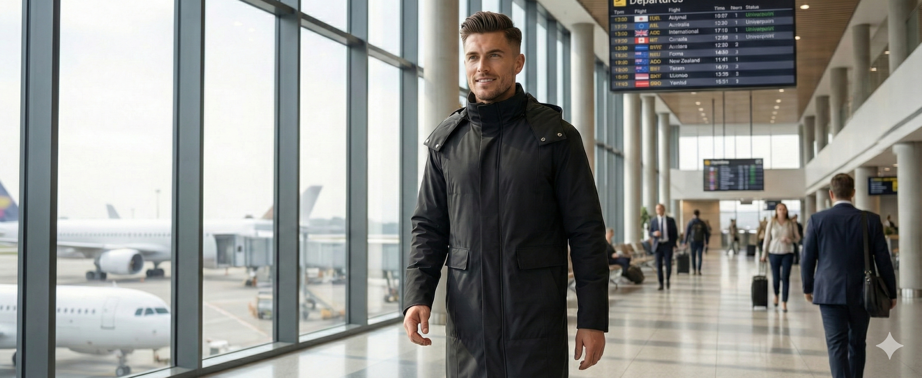 For the discerning traveler, freedom is the ultimate luxury. The EzyCoat was born from a desire to eliminate the clutter of modern transit. We envisioned a world where you move through airports and cities unencumbered, with everything you need seamlessly integrated into your attire.